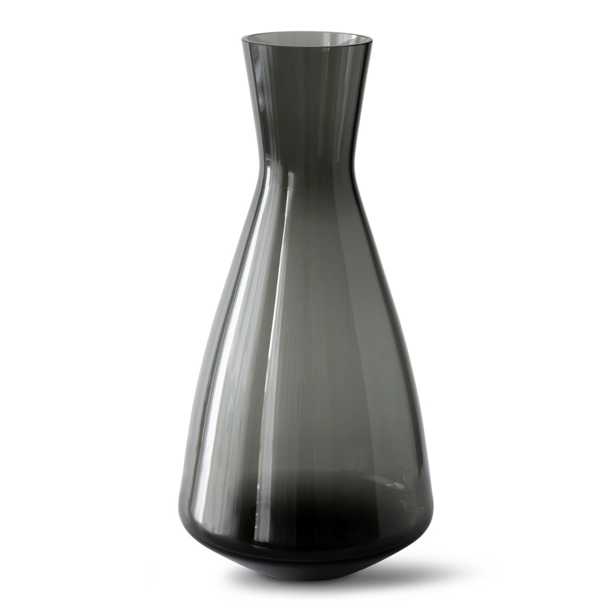Karaffen har, som resten av serien, en elegant og sober følelse. Laget av munnblåst glass i den vakre røkfargede tonen og med en behagelig avrundet form, kompletterer den serien slik at du kan dekke et enhetlig bord neste gang du ønsker å invitere til middag.