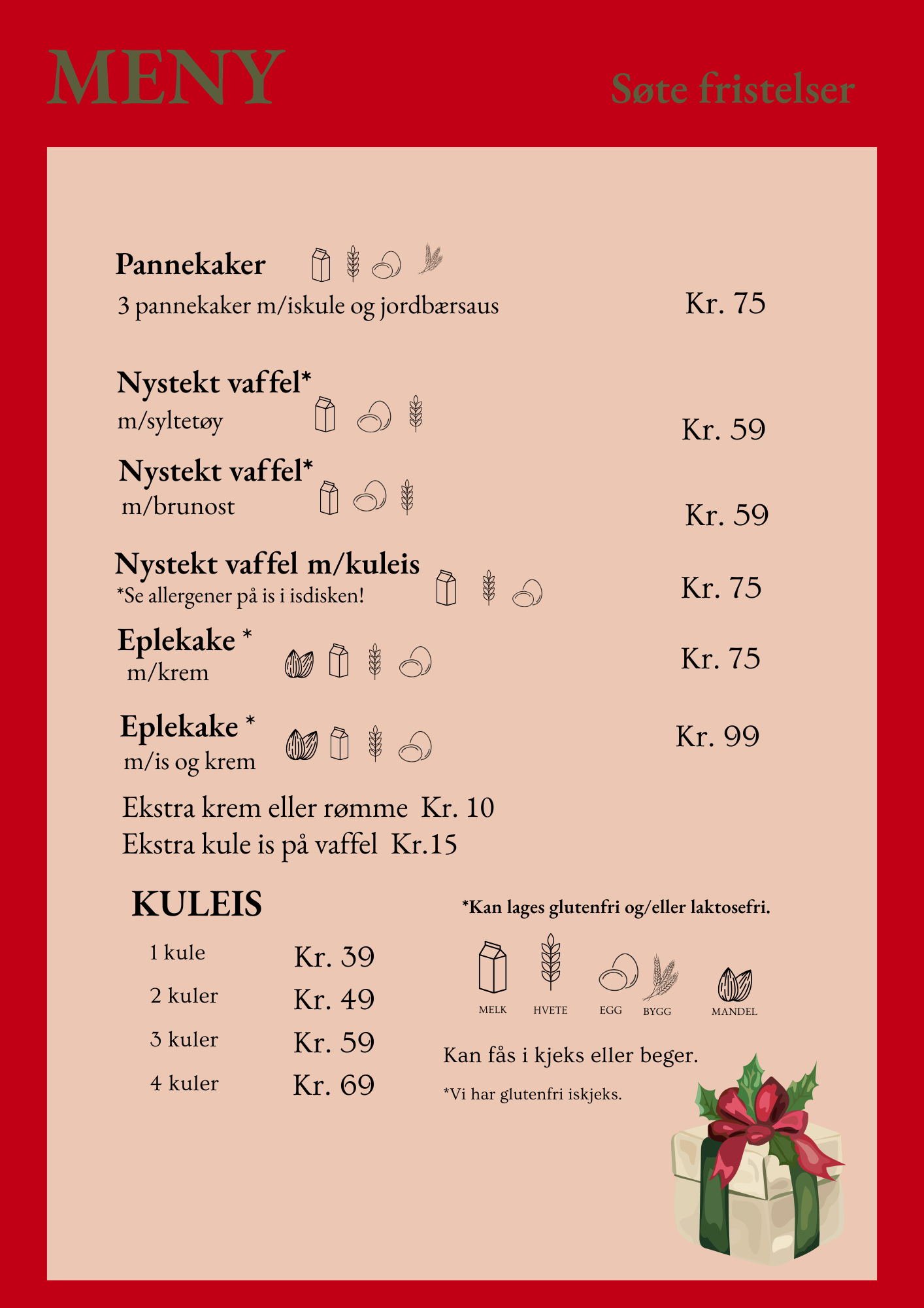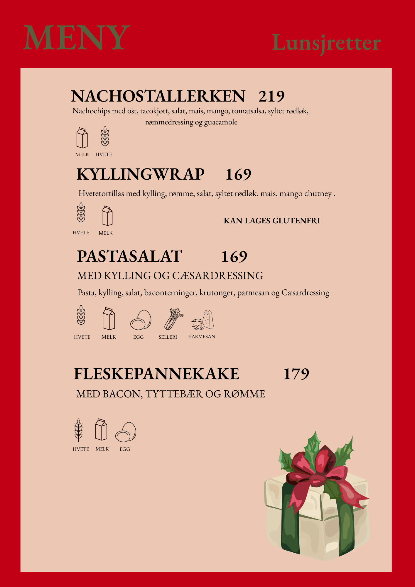 Se vår meny nedenfor.